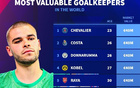 德转列世界足坛门将身价榜:舍瓦利耶4000万欧居首